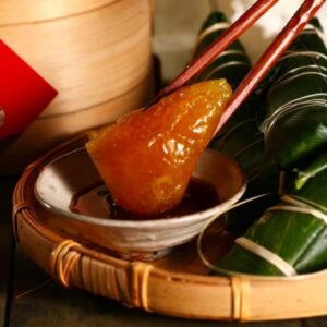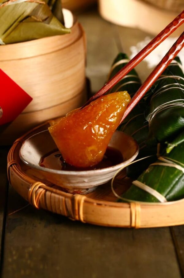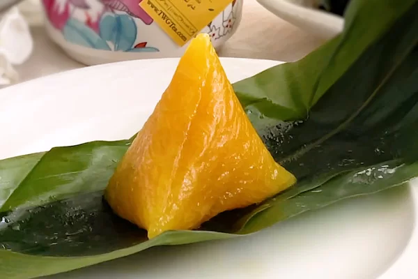 Bánh bóc ra, hiển hiện trước mắt là một khối ngọc màu hổ phách trong vắt, tưởng như có thể nhìn xuyên thấu bên trong. Cắt từng miếng nhỏ, nhẹ nhàng chấm vào bát mật mía màu vàng óng, thơm phức rồi nhẩn nha thưởng thức mới thấy hết hương vị của đồng đất quê nhà. Cảm nhận đầu tiên là hương vị mát rượi như thạch, rồi đến vị ngọt của mật mía thanh thanh quyện cùng cảm giác deo dẻo của gạo nếp, để lại dư vị khó quên.