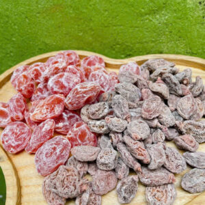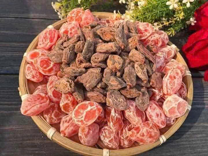 Ô mai đào hồng với màu đỏ tự nhiên, lớp đường phấn nhẹ bên ngoài, vị chua chua – ngọt ngọt – dẻo mềm cực cuốn. Khi ăn có mùi thơm đặc trưng của đào, vị đậm đà vừa miệng, rất thích hợp để ăn vặt, nhâm nhi khi xem phim, làm quà tặng hoặc đãi khách.